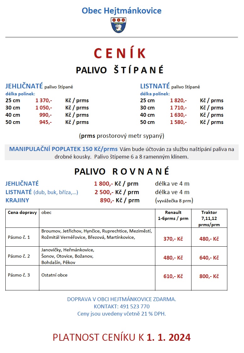 CENÍK ŠTÍPANÉHO A ROVNANÉHO PALIVA  k 1. 1. 2025
